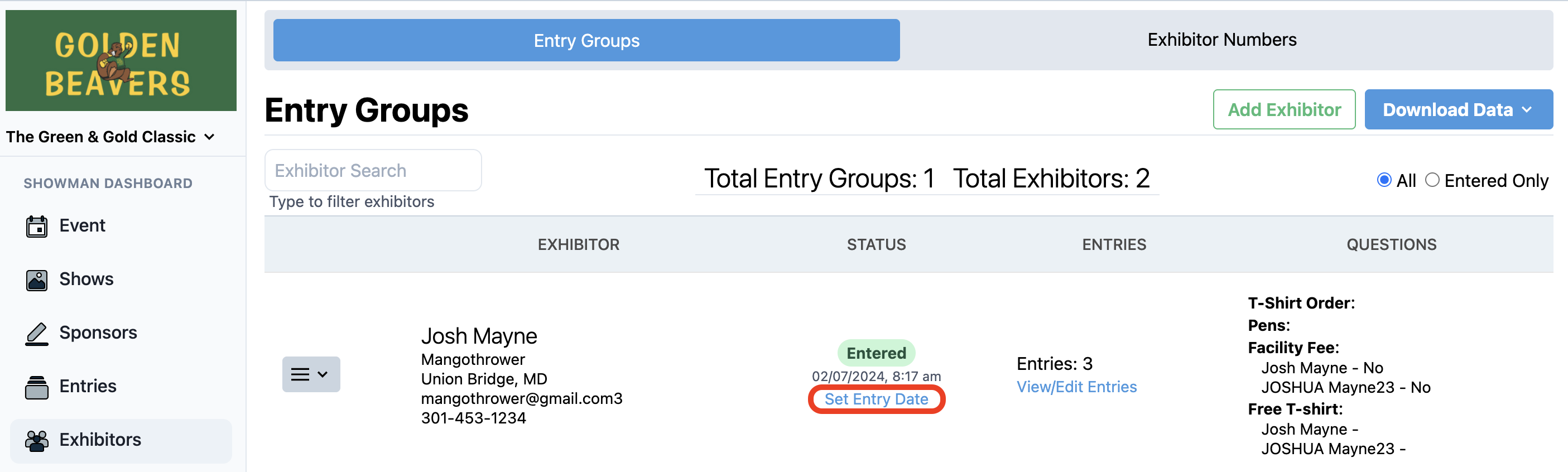 Go to the Exhibitors tab in your Showman Dashboard. Locate the exhibitor from the list.