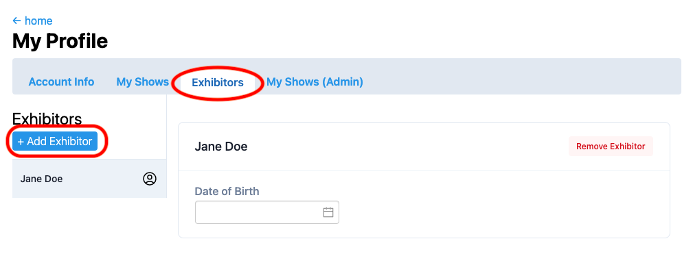 Each Showman Account can have several exhibitors. This is helpful for families with more then one exhibitor.