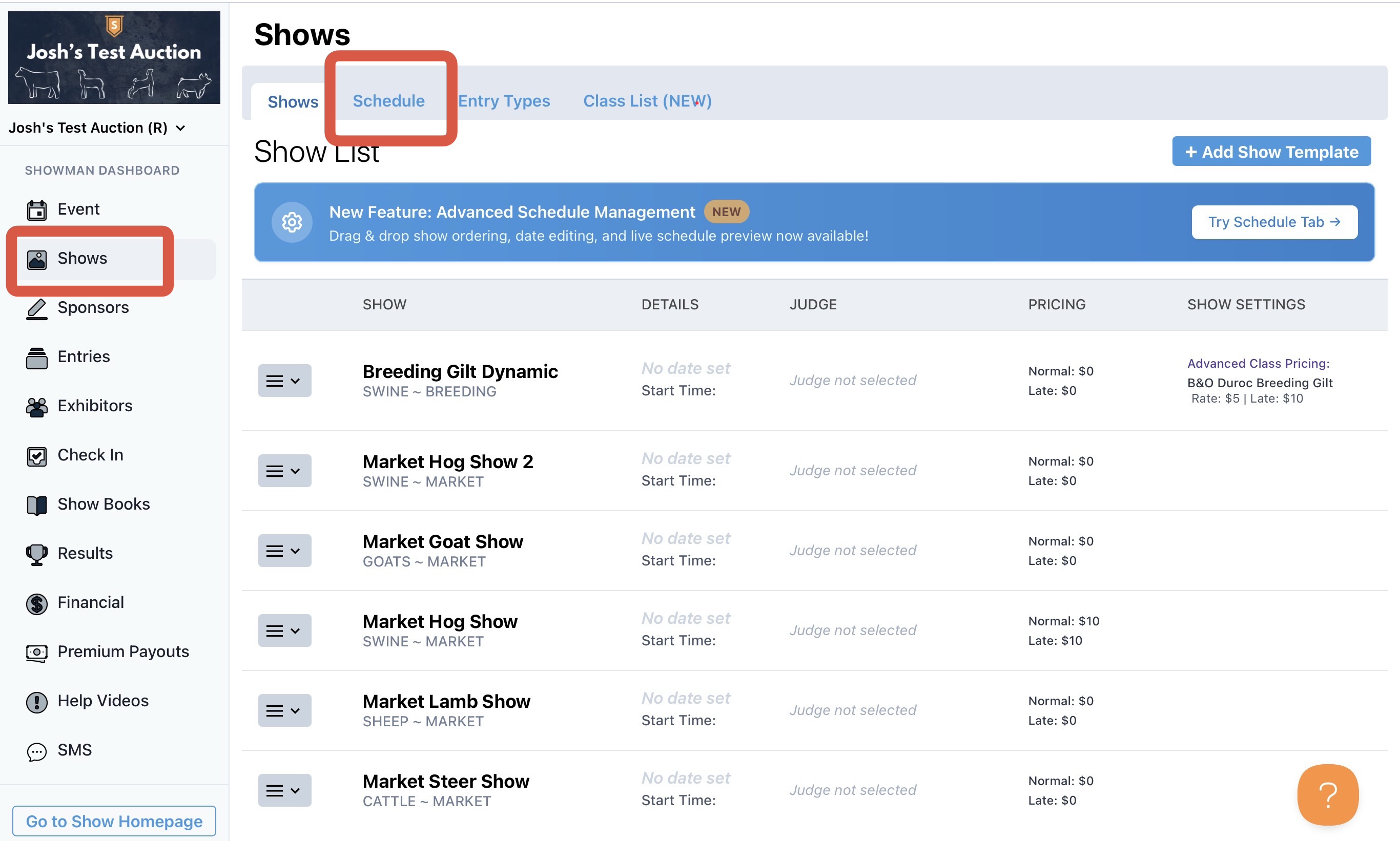 Creating your Show Schedule